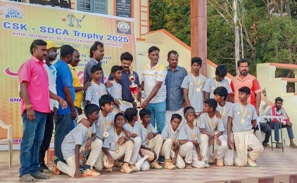 Igniting Minds, Ensuring Safety | | The Under-15 Cricket Team of Alagappa Matric School emerged victorious, winning the C.S.K Inter-District and Sivagangai District Combined Champion Trophy. Their exceptional teamwork led to the Sivagangai District Championship title. Special accolades went to Santhosh (Best Batsman), Abdullah (Best Bowler), and Captain Viswa (Best Bowler & All-Rounder). |