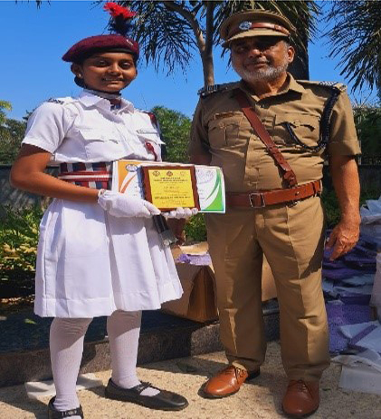 Shivani of Class IX A proudly represented the RSP Tamil Nadu Police Traffic Warden Organisation at the 76th Republic Day Parade in January 2025. The grand celebration featured cultural performances, military displays, and school contingents, honoring India's unity and heritage. The Governor hoisted the national flag, paying tribute to freedom fighters and national pride