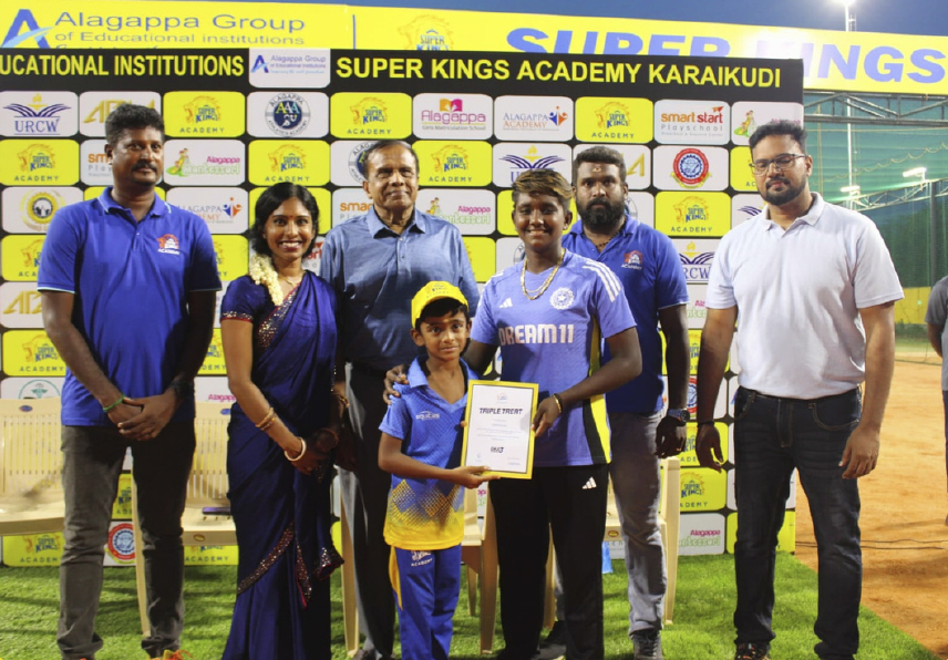The Super Kings Academy Karaikudi celebrated its first anniversary with a spirited event honoring young cricketers for their dedication. U-19 star Gunalan Kamalini inspired the crowd, alongside active support from Dr. Ramanathan Vairavan and Ms. Devi Alamelu Vairavan. The event marked a proud step in empowering youth through sports.